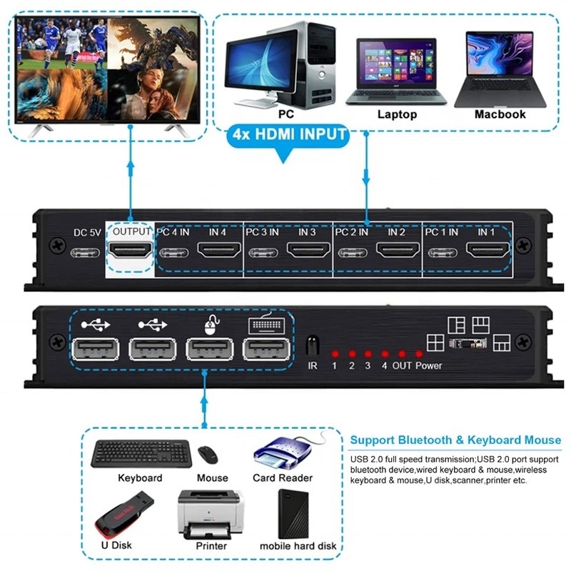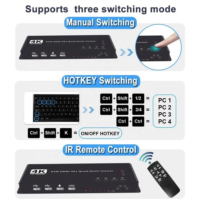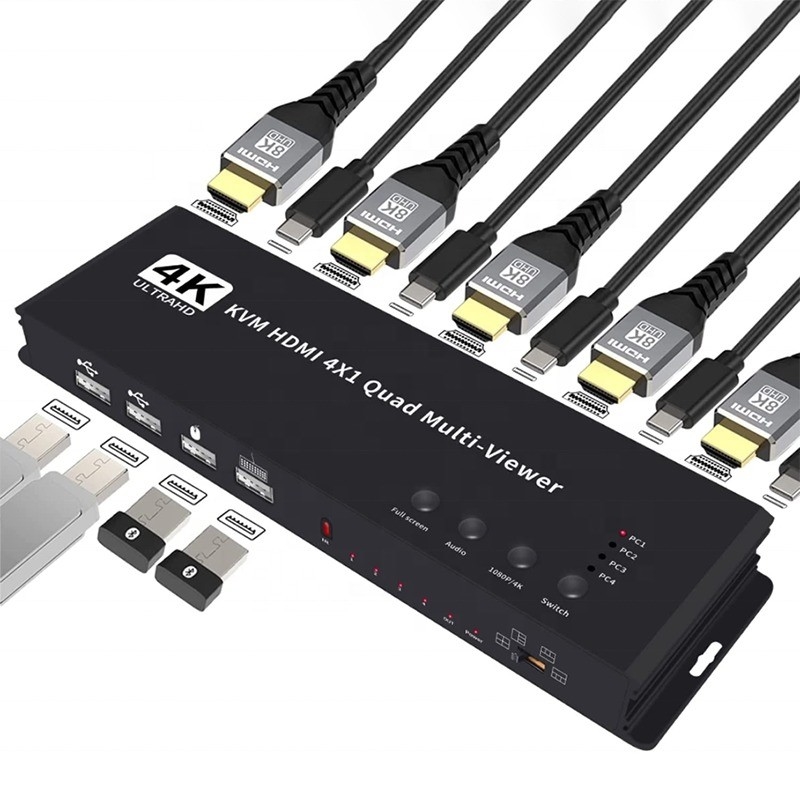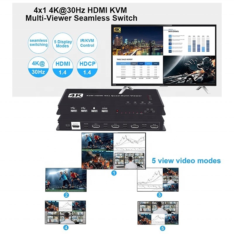 4K HD HDMI KVM Switch 4 موانئ HDMI USB Switch 4x1 HDMI KVM Quad Multiviewer مفتاح غير سلس